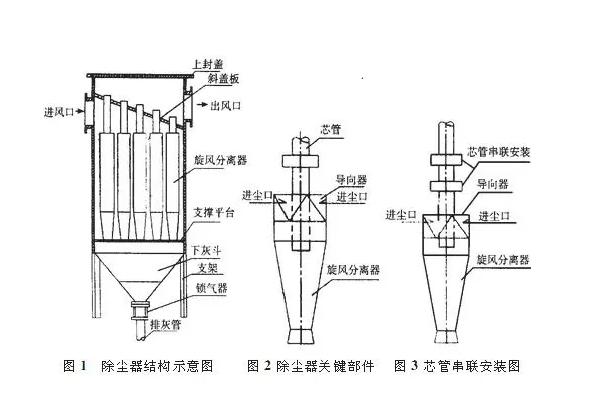 XLGIA(B)型除塵器是采用多級切向進(jìn)氣旋風(fēng)除塵,當(dāng)含塵氣體進(jìn)入入口后順流分散至各陶瓷了導(dǎo)向器,于子內(nèi)塵氣旋轉(zhuǎn),離心力作用使粉塵分離,粉塵降落子集塵箱內(nèi),經(jīng)鎖氣器排出,清潔氣體由排氣管排出。